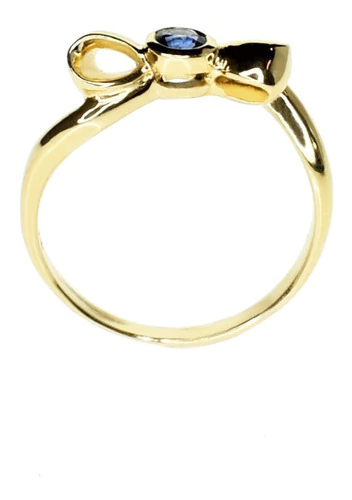 Anillo realizado en oro Amarillo 18 Kts. con forma de Moño Engarce de un Zafiro Azul central.